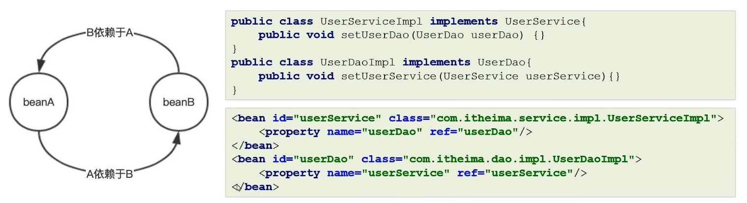 注入双向对象引用属性时,就比较复杂了,涉及了循环引用(循环依赖)问题(重点)