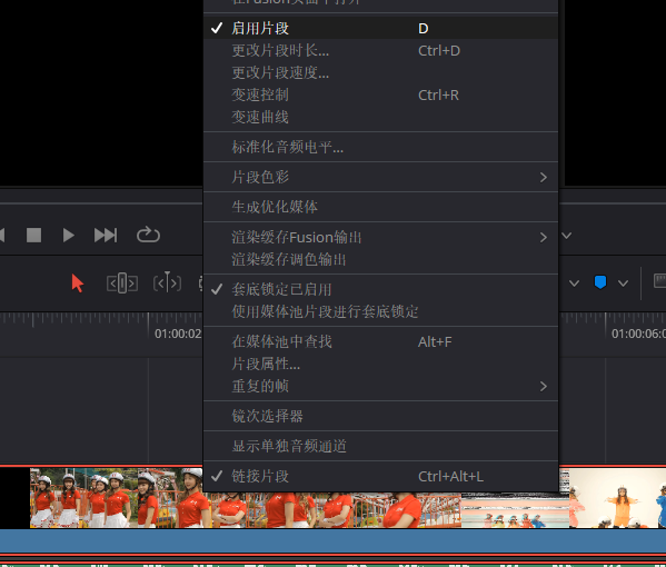在某些情况下,我们需要对片段在不调整删除的情况下进行临时性的生效或失效,我们可以对片段【右键】-【启用片段】来进行开启或关闭片段的预览。
