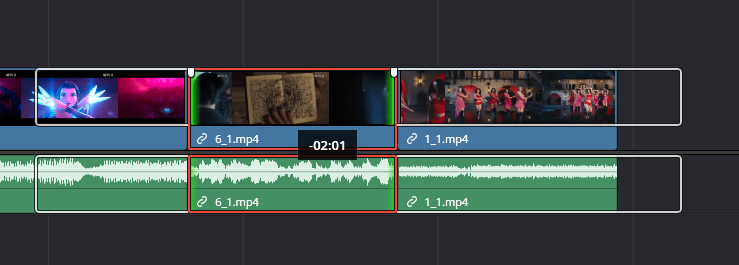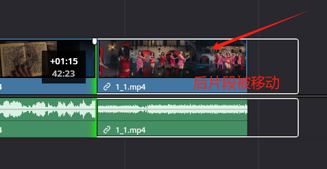 1.当三个片段中都存在内容延长的片段时,使用选择工具在片段边缘可自由调整片段在三段片段中的内容位置(即同时缩短前片段的时长,且延长后片段的时长,保持内容完整)