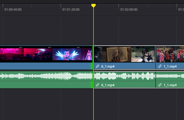 开启【吸附】后,时间线中的片段互相靠近时,会做自动贴合,当关闭时,片段能自由精确移动。