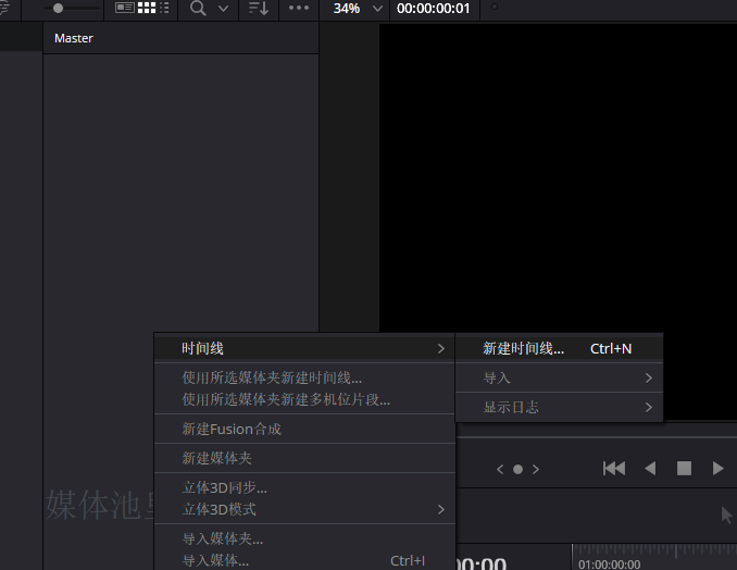在媒体池中创建时间线