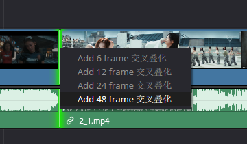 达芬奇包含了多种方式为两个片段添加转场功能。
