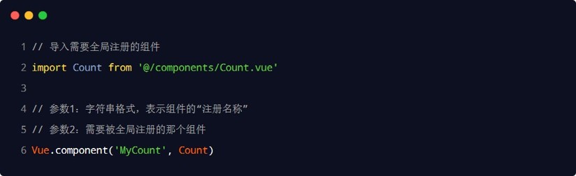 通过以上方式注册的组件都为私有子组件,私有子组件只能在父组件范围内使用,非父组件范围内是不能使用的,但是针对复用性高的子组件,可以通过设置全局组件,全局组件在任何组件中都能直接使用不需要重复引入.