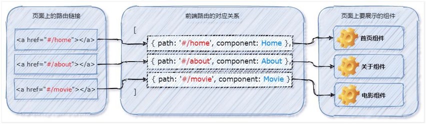 ④ 前端路由把当前 Hash 地址对应的组件渲染都浏览器中