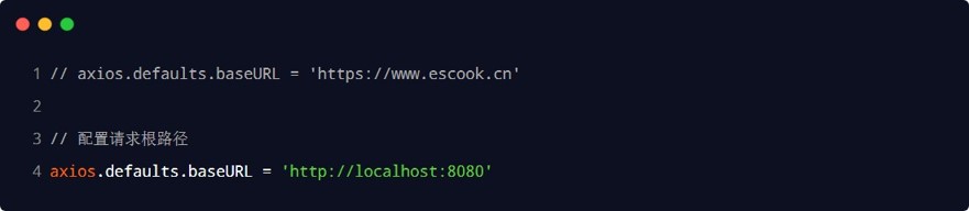 ① 把 axios 的请求根路径设置为vue 项目的运行地址(接口请求不再跨域)