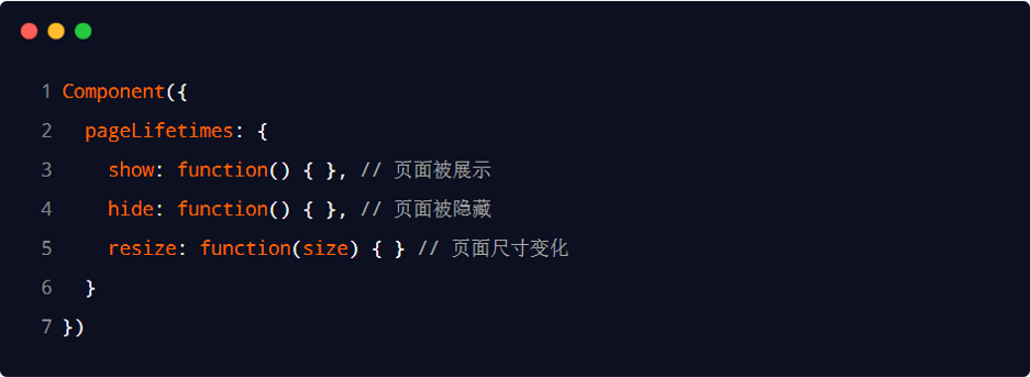 在自定义组件中,组件所在页面的生命周期函数有如下 3 个
