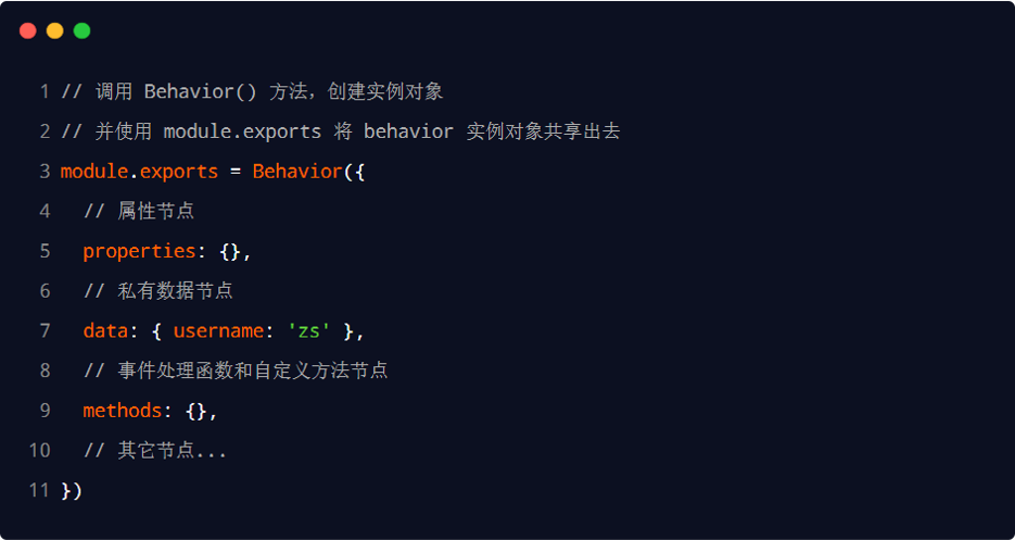 调用 Behavior(Object object) 方法即可创建一个共享的 behavior 实例对象,供所有的组件使用
