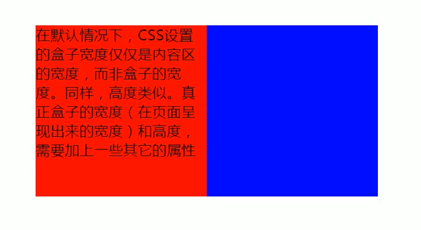 在默认情况下,CSS 设置的盒子宽度仅仅是内容区的宽度,而非盒子的宽度。