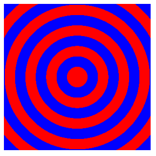 圆心在中间,扩展到最远的角,使用正圆辐射,红色从0%到10%变为蓝,蓝色从10%到20%变为红,如此类推。