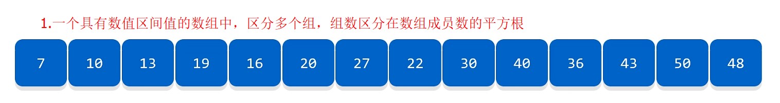 2.块数数量一般等于数组的个数开根号,比如:16个成员,那么应该是分4组左右