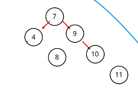 7->8 因为7节点左右都有节点,所以要看4节点